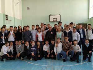 искусств, Председателем Столичной Федерации Айкидо Лукиным Анатолием Геннадьевичем вместе с сотрудниками ОСН «Вулкан» УФСИН КБР по России показал очередной мастер-класс для учеников 5 «А», 6 «А», 7 «А» и 9 «А» классов. Анатолий Геннадьевич ответил на вопросы о важных стартах, преодолении препятствий, силе духа и личных планах и перспектива, а также поделился своей историей успеха, рассказал о том, как важно идти вперед, невзирая на трудности и пожелал всем ученикам, и в частности начинающим спортсменам всегда достигать поставленных целей и чувствовать поддержку команды. Встреча с легендой спорта вызвала у учеников и педагогов бурю аплодисментов и массу положительных эмоций! Безусловно, ребятам очень интересно было пообщаться, познакомиться с такими людьми. Такие встречи полезны тем, что помогают донести до детей, что нужно быть здоровыми в жизни, помогают завлечь детей в спортивные секции.